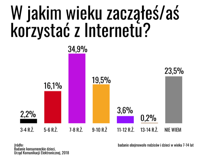 W Polsce - choć nie były prowadzone badania w tym zakresie, wiemy z badan konsumenckich, że zarówno inicjacja smartfonowa, jak internetowa polskich dzieci zachodzi wcześnie, z kumulacją około 7-8 roku życia.